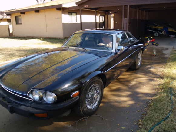 Missy poses for us in Houston. She is Tungsten with dark blue leather and top. Don and Patti McClane 1988 XJS Hess&Eisenhardt 1995 X-300 XJ-6
