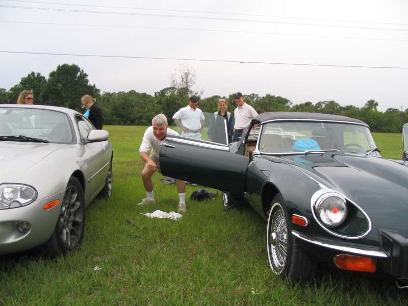 those who've been with the club for a while know that Russell's Etype does not like Indiantown... this year, it was just a flat tire, not as bad as receivin a full tank of... diesel!